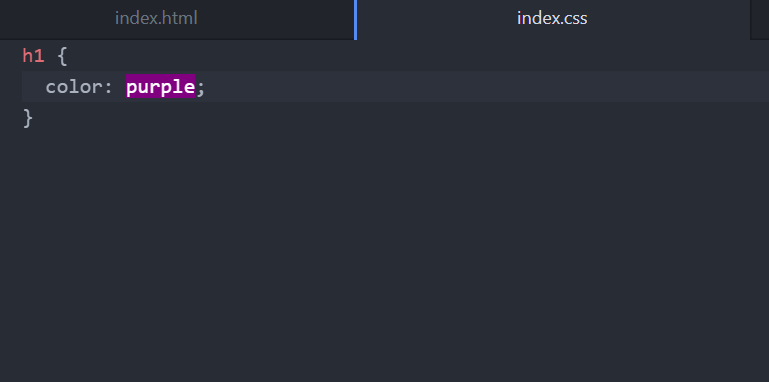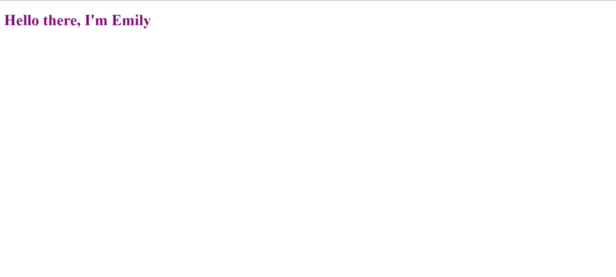 The first step is making our heading purple, right? Well, we have too options. The first is to simply add the color as ‘purple’, since the computer recognizes it as purple. Example: